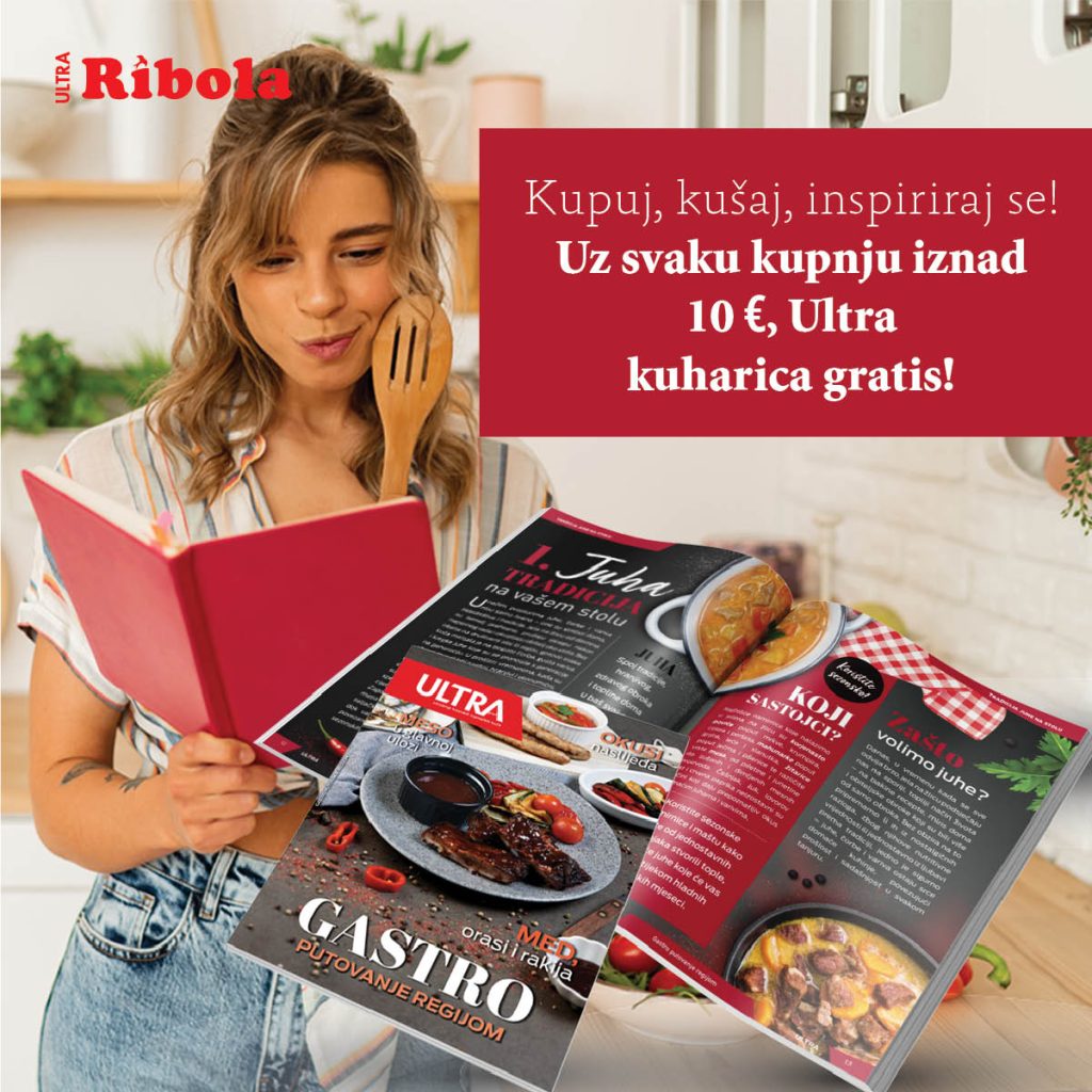 Uz svaku kupnju iznad 10€ u Ribola prodavaonicama, na dar dobivate ULTRA kuharicu – GRATIS!